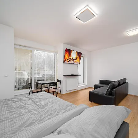 Apartamento Apartman Mezilehla está situado en el barrio Praga 9 de Praga, a 8 km de la Torre de la Pólvora.